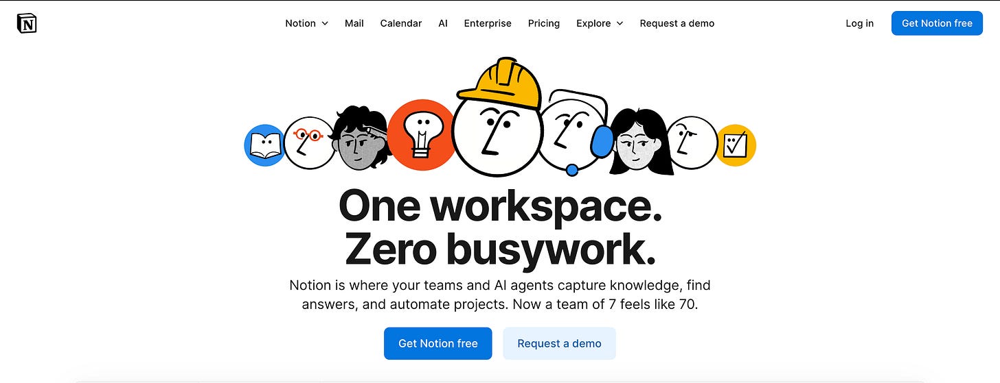 Or take Notion. Their website strategy doesn’t try to explain every feature. Instead, it focuses on transformation: showing you what becomes possible when your tools get out of the way. The site is organized around use cases, not feature lists, because that’s what actually helps people understand the value.