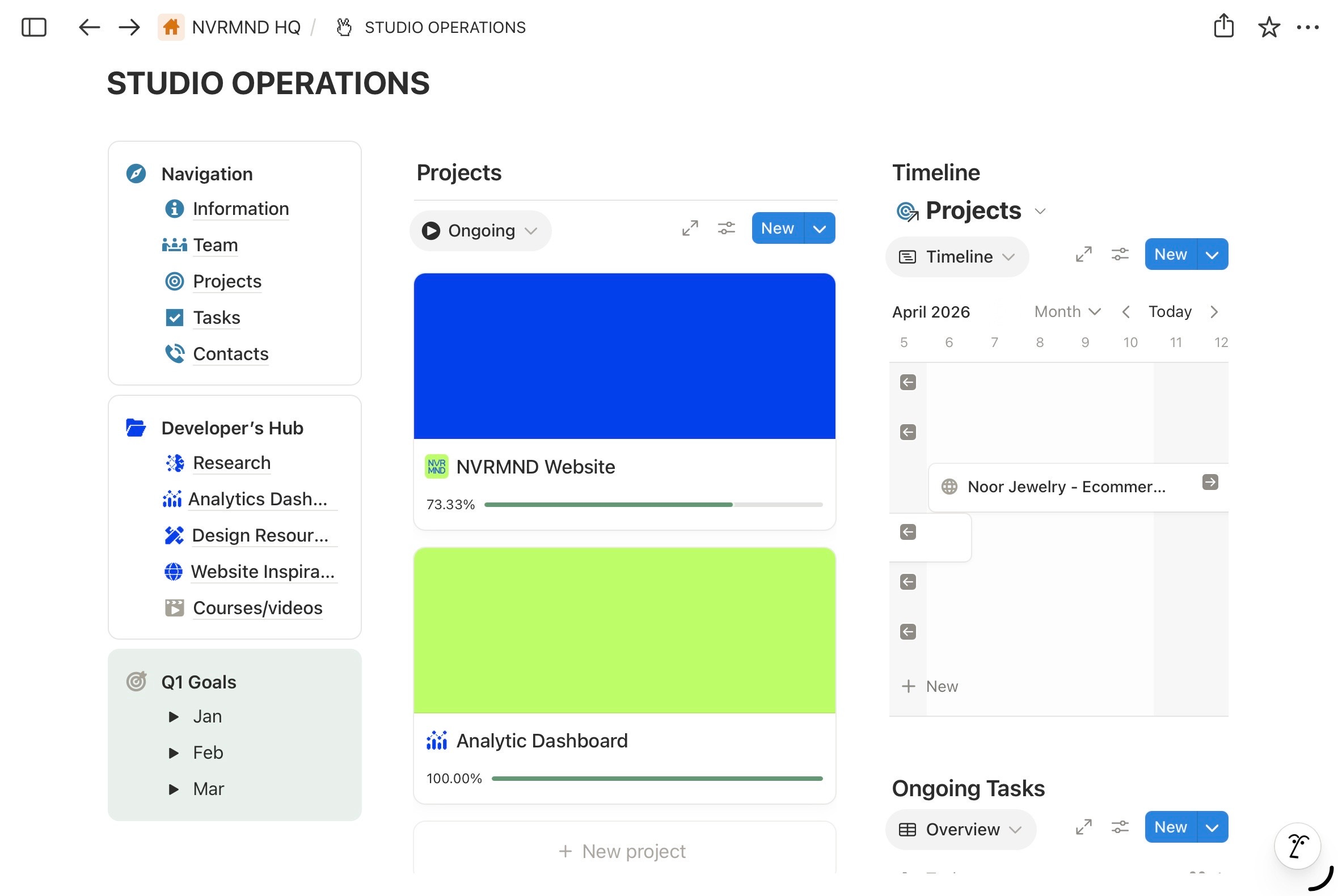 I created an operations dashboard for the team. It houses all our ongoing project timelines and streamlines our entire process.